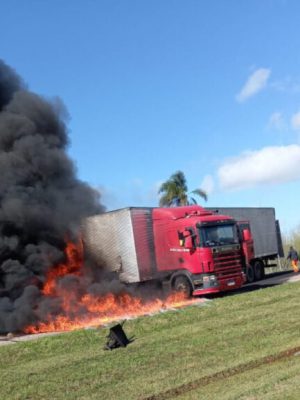 Acidente: caminhão colide com máquina de asfalto na BR-116