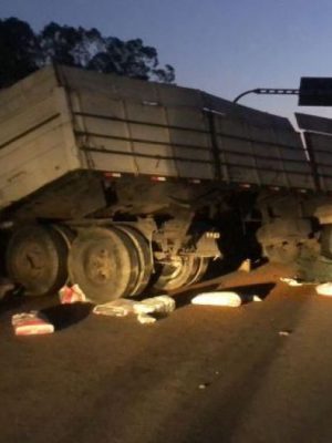 Caminhão tomba após colidir com mureta da ponte em Pelotas e causa b