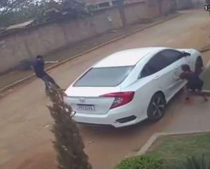 Menino rasteja atrás de carro para fugir de ataque a tiros contra o p