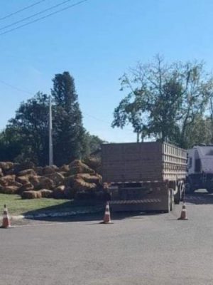 Caminhão com carga de fumo de Amaral Ferrador tomba na RSC-287 no Val