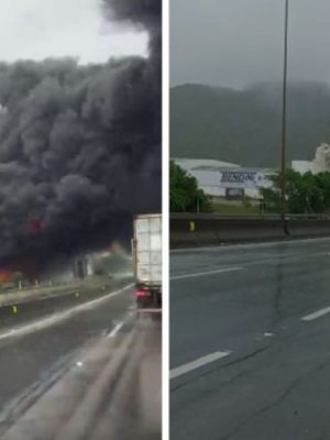 VÍDEOS: Reação de produto químico com água causa incêndio gigant
