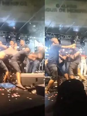 Integrantes das bandas Psirico e Samba Trator brigam em cima de palco