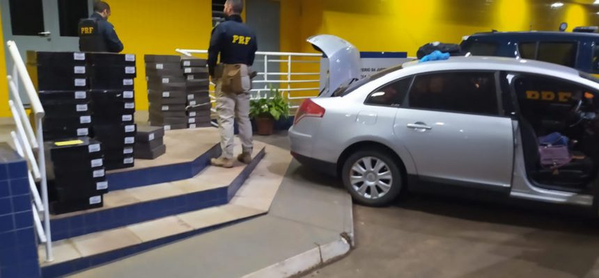 Durante operação de combate à criminalidade, a PRF abordou um Citroen C4 que transitava pela BR-472. O veículo, emplacado em Araranguá/SC, era conduzido por um homem e tinha como passageira uma mulher, ambos catarinenses e com 41 anos.