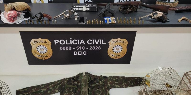 Com o objetivo de reprimir a prática de comércio ilegal de animais silvestres e condutas ligadas à posse ilegal de armas de fogo, no município de Estância Velha, foram cumpridos quatorze mandados de busca e apreensão, resultando na apreensão de 5 armas de fogo, diversas munições, 17 pássaros, carne de caça, troféus de caça entre outros objetos pertinentes à investigação. De acordo a Delegada da DEMA, Samieh Saleh, dois indivíduos foram presos em flagrante por crime de posse ilegal de arma de fogo e munições.