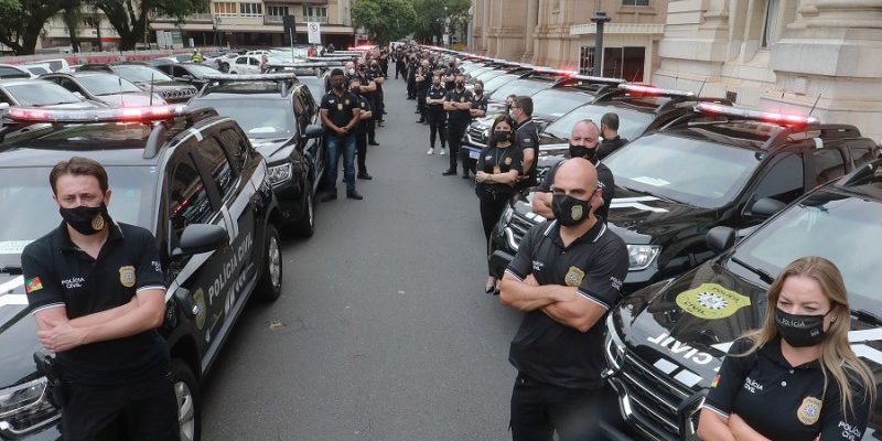 Em uma cerimônia em frente ao Palácio Piratini, em Porto Alegre, o governador do RS, Eduardo Leite, e o vice-governador e secretário da Segurança Pública, delegado Ranolfo Vieira Júnior, entregaram à Polícia Civil 41 viaturas semiblindadas. Outros quatro veículos ainda estão em produção.