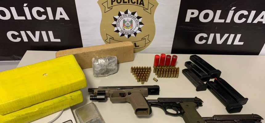 Na tarde de terça-feira (27), foram realizadas buscas em imóveis localizados no bairro Nonoai, na Zona Sul de Porto Alegre, e no bairro Vera Cruz, em Gravataí. Os policiais apreenderam três pistolas, mais de dois quilos de cocaína, um quilo de maconha, balanças de precisão e um drone avaliado em cerca de R$ 50 mil.