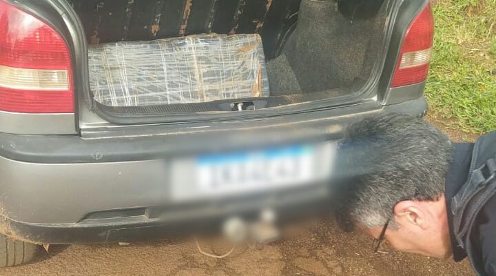 Ao vistoriar o interior do carro, também encontraram grande quantidade de tabletes de maconha soltos no assoalho traseiro e acondicionados em outros quatro fardos, sendo um sobre o banco traseiro e mais três no porta-malas.