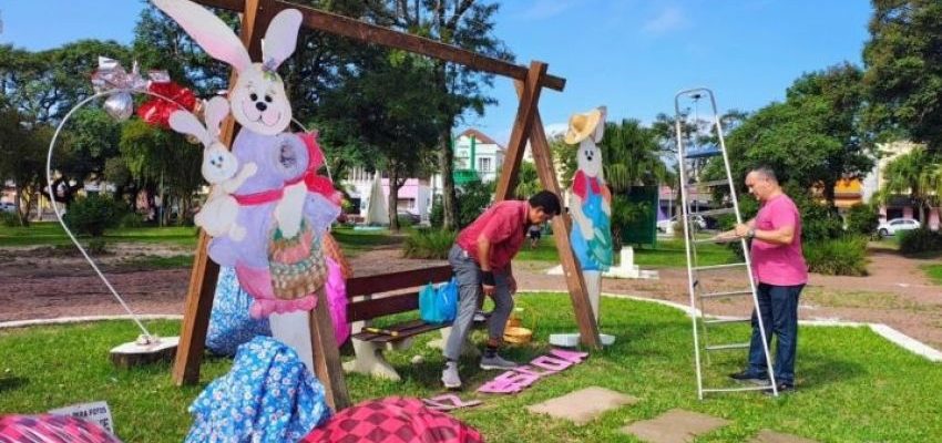A Prefeitura de Tapes, por meio da Secretaria de Turismo e Cultura, deu iniciou, nesta quinta-feira (26), a decoração da Praça Ruy Barbosa para a Páscoa.
