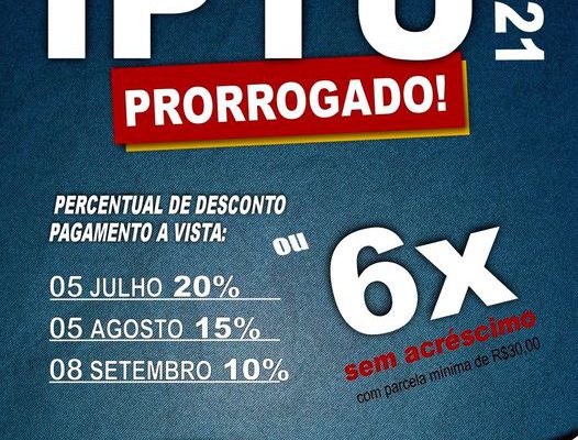 Através do Decreto nº 2.607/2021, no uso das suas atribuições legais, o prefeito Nataniel prorroga o pagamento do IPTU, bem como proporciona a opção de parcelar em até 6 vezes sem juros (desde que a parcela não seja menor que R$30,00).