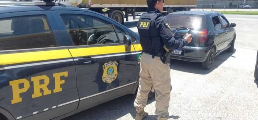 Os PRFs estavam em deslocamento na viatura e ao passar por um carro constataram que o motorista estava segurando e bebendo um latão de cerveja enquanto dirigia.