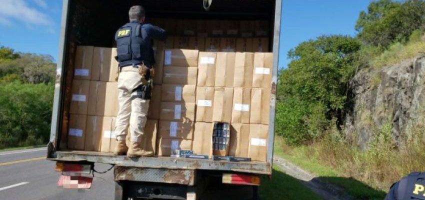 Na manhã desta terça-feira (26), na BR 392 em Pelotas, Policiais Rodoviários Federais prenderam um contrabandista e apreenderam um caminhão com grande quantidade de cigarros contrabandeados. “As Informações são do portal Clic Camaquã”