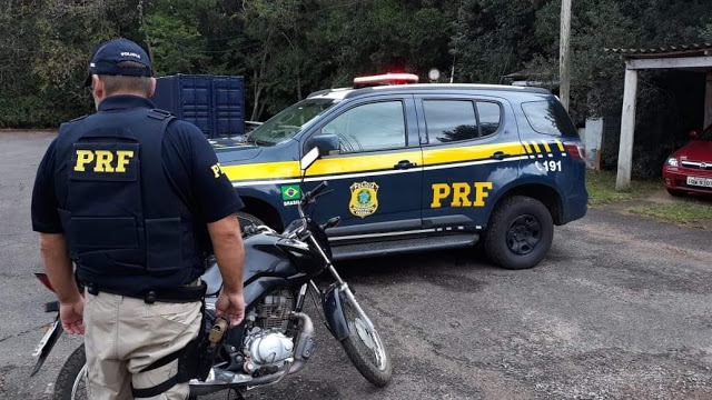 A Polícia Rodoviária Federal prendeu um criminoso por receptação na BR 290, em Pantano Grande, por volta do meio-dia desta terça-feira (5). O homem estava pilotando uma motocicleta Honda/CG Fan que estava com ocorrência de roubo.
