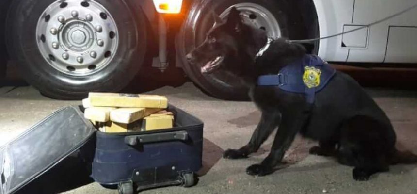 Durante uma operação para o combate ao crime, os policias abordaram um ônibus que fazia a linha Porto Alegre – Pelotas. Na fiscalização das bagagens, os cães farejadores indicaram a presença de drogas em duas malas. Dentro delas os policiais encontraram cerca de 30 kg de maconha.