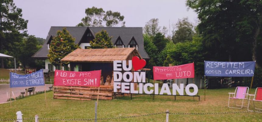 Os professores da rede municipal de ensino de Dom Feliciano realizaram nesta terça-feira (26), uma manifestação silenciosa na Casa de Cultura do município.