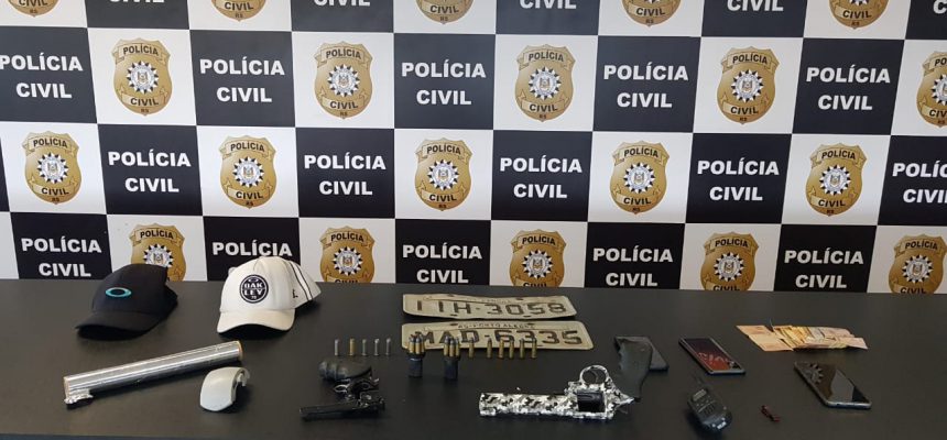 Os criminosos foram autuados em flagrante pela prática dos delitos de associação criminosa armada e porte ilegal de arma de fogo.