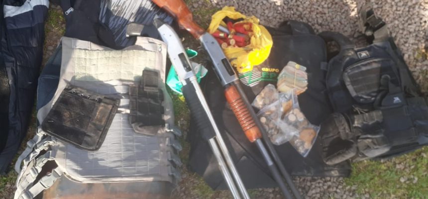 Após buscas no município, foram localizados e presos os dois autores da ação informados pelo motorista. Com eles, foram encontrados munições, colete balístico, duas espingardas calibre 12 e o dinheiro que havia sido roubado.