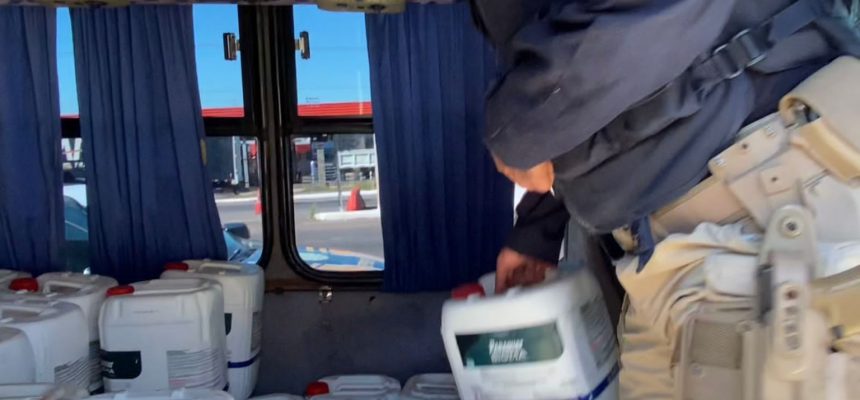 A carga era transportada em um micro-ônibus, com placas de Santa Catarina. O motorista foi preso. Ao abordarem o veículo, os policiais encontraram aproximadamente 200 galões de agrotóxicos contrabandeados. Os bancos haviam sido retirados para acondicionar a carga.