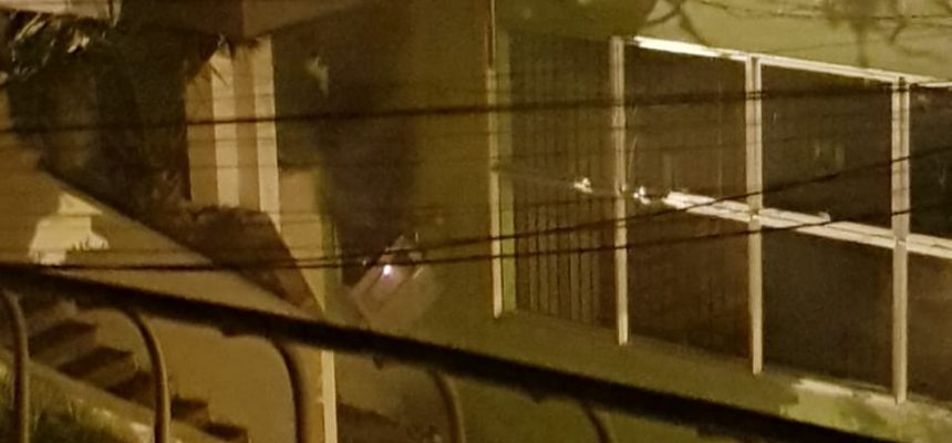 Estilhaços caíram na via pública e nos prédios vizinhos. As imagens foram enviadas por Gustavo Goularte e Márcio Milech.