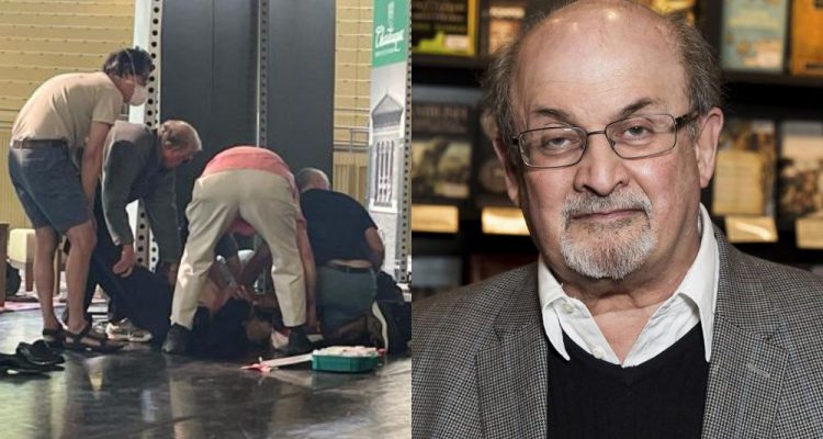 Rushdie foi levado do local de helicóptero por socorristas. A pessoa que estava entrevistando o escritor sofreu um leve ferimento na cabeça.