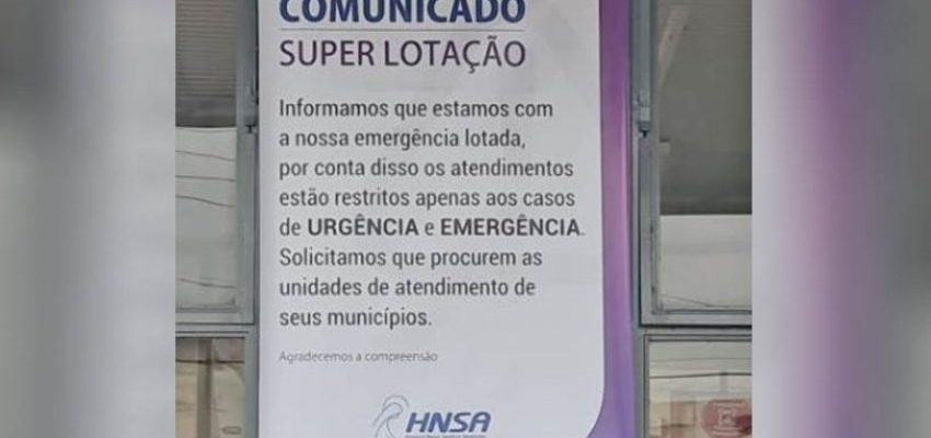 Uma reunião entre a administração do HNSA e os secretários municipais de Saúde dos municípios que compõe a área de atendimento do HNSA deve ser realizada na próxima segunda-feira (7). A instituição de saúde deve se pronunciar novamente após o encontro com os gestores, mas não é descartada a possibilidade de fechamento do Pronto Socorro.