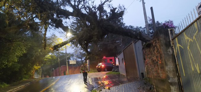 Porto Alegre amanheceu com cerca de 15 mil clientes sem luz. Além de provocar quedas de árvores, a ventania quebrou vidros de alguns prédios na cidade. Semáforos ficaram fora de operação, e a chuva provocou alagamentos. Segundo a Defesa Civil Municipal, as rajadas chegaram a 90 quilômetros por hora na Capital.