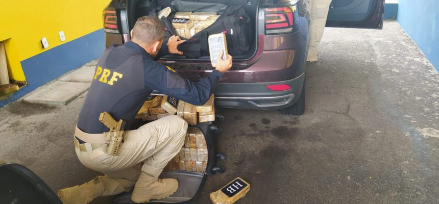 Na manhã desta segunda-feira (14), a Polícia Rodoviária Federal (PRF) apreendeu 106 quilos de pasta de base de cocaína em um carro abordado em Osório, no Litoral Norte. O traficante foi preso.