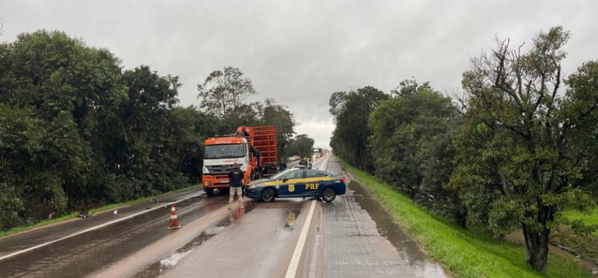 Conforme a PRF, o bloqueio ocorre de forma alternada entre total e parcial para os trabalhos de perícia e retirada dos veículos.