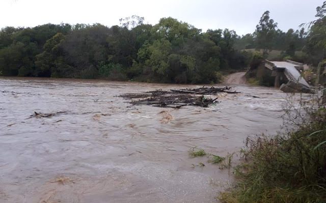 O trânsito está interrompido, com o aumento do nível da água, devido as chuvas, na divisa Colônia Palma, 5° distrito de Canguçu com Faxinal, 7° distrito de São Lourenço do Sul, nesta sexta-feira, 12.