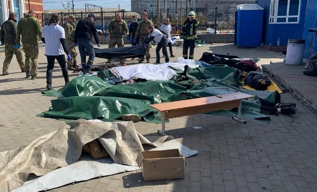 A Ucrânia acusa as tropas russas de massacres, o que o governo da Rússia nega. Moscou alega que os corpos encontrados são uma encenação do governo de Kiev.