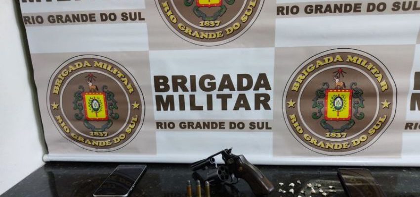 Ao ser abordado, foi localizado em sua cintura um revólver calibre 38 com três munições intactas e no interior do pátio foi visualizado dois indivíduos com os quais foram encontradas 19 pedras de uma substância com características a crack, uma certa quantia em dinheiro e dois aparelhos celulares. Diante dos fatos, foi dado voz de prisão em flagrante aos envolvidos e conduzidos a Delegacia de Polícia de Camaquã para registro e demais providências pertinentes.