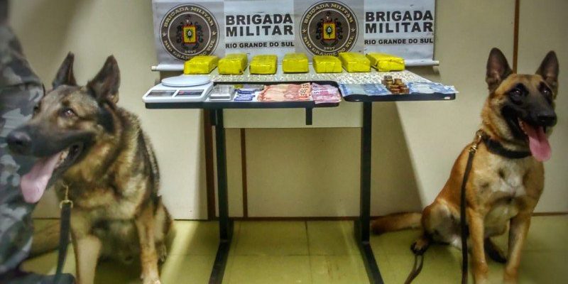 No local, os policiais foram recebidos por uma mulher que autorizou a entrada da Brigada Militar na residência. Os cães farejadores Rick e Baruk, que estão atuando no Litoral Norte com o efetivo que está apoiando a Operação Golfinho, localizaram pedras de crack e quase 5 quilos de maconha no pátio.