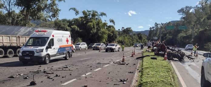 Uma pessoa morreu e outras duas ficaram feridas em um acidente de trânsito no km 39 da ERS-122, em São Vendelino, na Serra Gaúcha, neste sábado (08). O acidente, envolvendo um carro e um caminhão, ocorreu por volta das 11h.