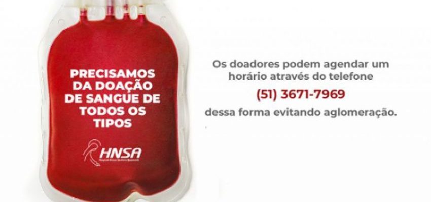O Banco de Sangue do Hospital Nossa Senhora Aparecida está necessitando de doadores com os seguintes tipos sanguíneos: O+, O-, A+ e A-. Os interessados devem agendar o atendimento através do telefone (51) 3671-7969.  “As Informações são do Portal Clic Camaquã”