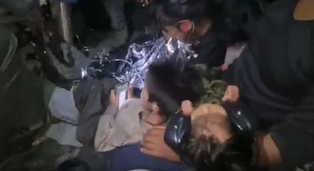 Os militares a bordo de um helicóptero tiveram que enfrentar a chuva e a escuridão da noite para fazer o resgate. As crianças foram retiradas da floresta uma a uma com a ajuda de cordas.