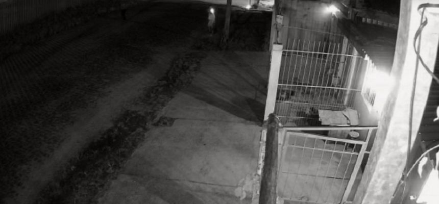 Após estacionar o veículo na esquina, cerca de um minuto depois, três homens armados chegam na frente da residência e efetuam os primeiros disparos.
