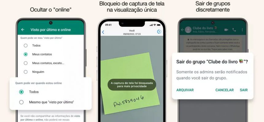 O aplicativo também anunciou a permissão para deixar grupos sem que todos os integrantes fiquem sabendo e a possibilidade de bloquear capturas de tela (print screen) em mensagens de visualização única.